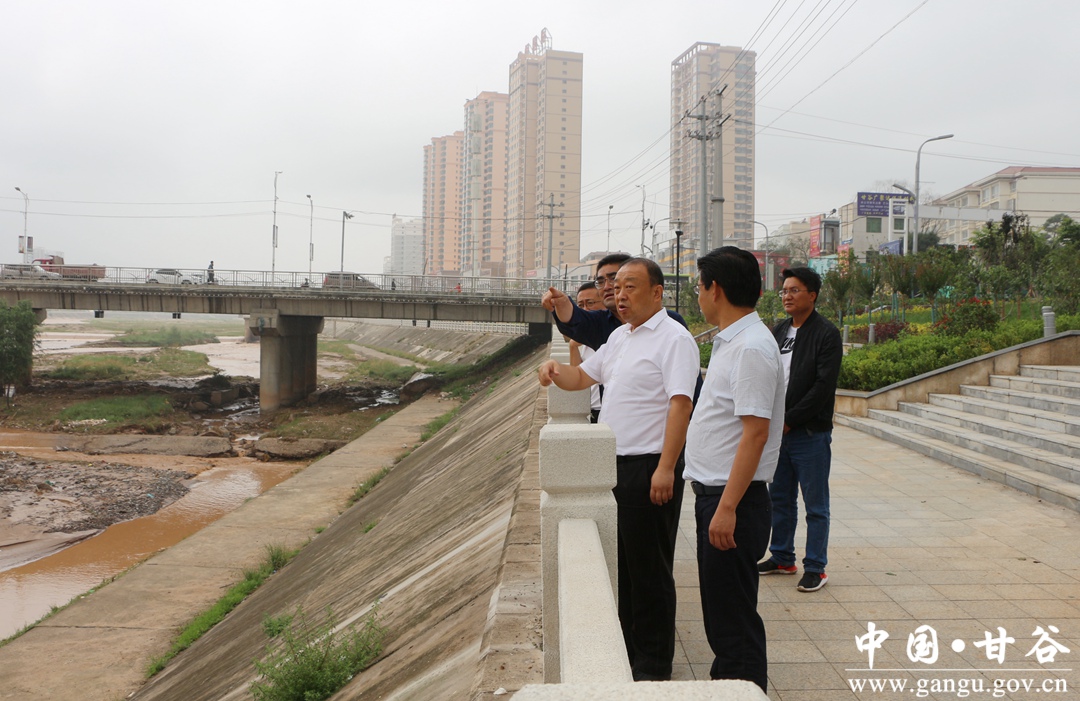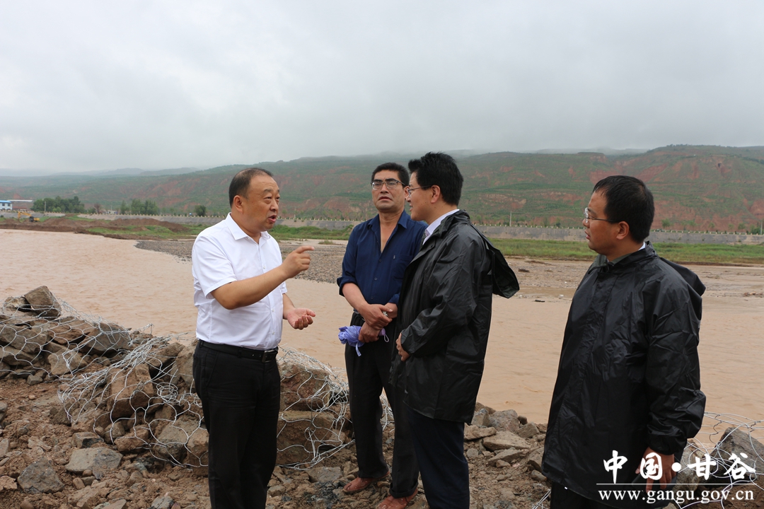 吴健一行实地查看了安远镇董川村,新兴镇、六峰镇、磐安镇辖区渭河沿线堤岸及道路受损情况。