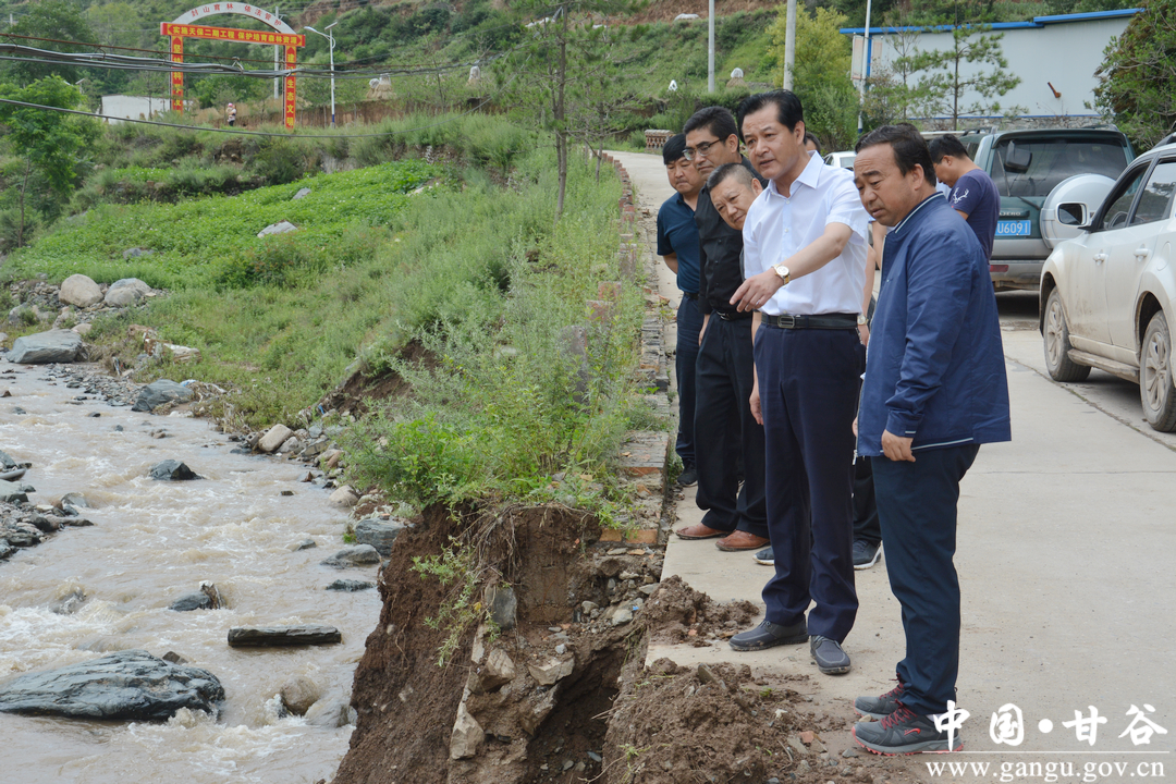 在藉河古坡镇沿线公路、河堤水毁段,申君明边走边看,详细询问了解水毁情况。申君明强调,要密切关注当前及未来雨情、汛情,全面落实应急措施,及时加固抢修河堤,积极做好河道疏浚,确保河道沿岸人民群众生命财产安全;要在危险点段设置安全警示标识,安排专人轮流值班值勤,全力保障人员车辆通行安全。
